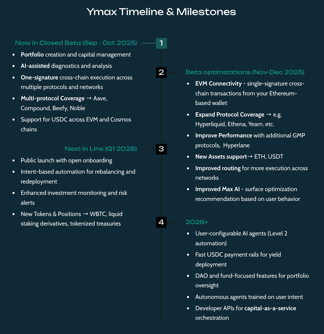 Now, with this foundation live, we’re entering a product-led phase. Ymax is the first application built on orchestration. It’s an on-chain capital command center that makes it simple to deploy, manage, and automate strategies across protocols and chains.